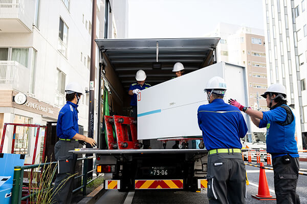 あとらす二十一様の主要業種がWeb関連であることから、一般的なオフィスよりもパソコンをはじめとした機器類を多く運搬する必要があった。NXでは事前に先方に専用の梱包資材と梱包マニュアルをご提供し、梱包作業をサポート。繊細な機器類を1台も傷つけることなく、安全に搬送した。