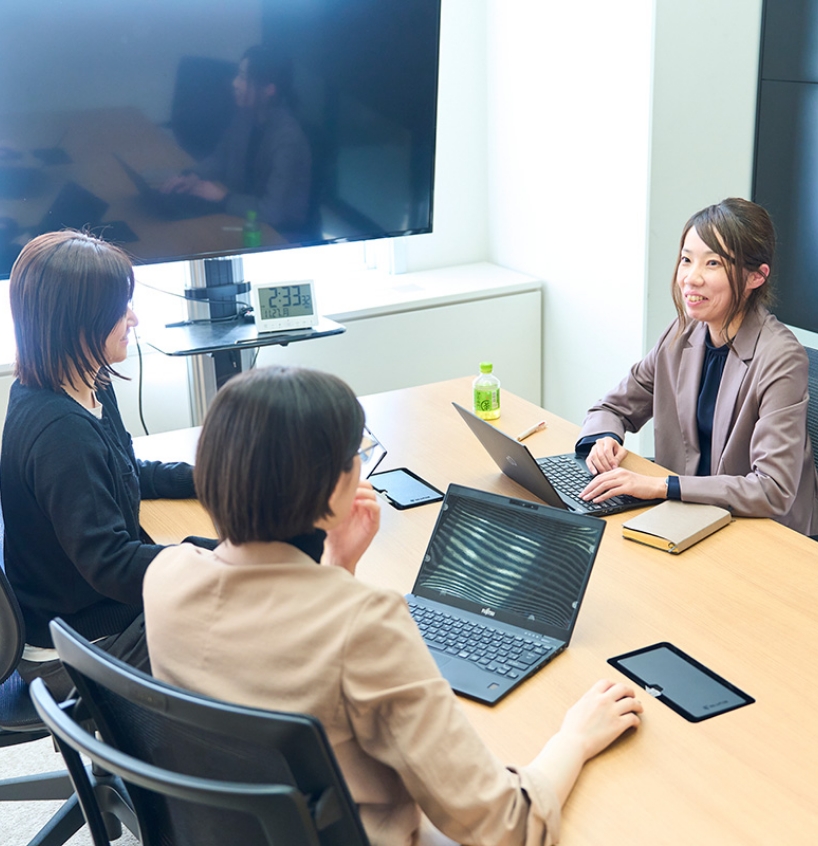 当社に入社した頃は、今のようなポジションに立って仕事をするなんて想像もしていませんでした。課長という立場になってから、エリア職の女性社員にとって一つのロールモデルのような役割を果たしてみたいと考えるようになりました。エリア職であってもさまざまな仕事にチャレンジし、私のように同じエリア内で大きく異動することもできる。そんな可能性があって働きがいのある職種であることをみんなに伝えていきたい。エリア職の女性社員が情報交換をしたりできる仕組みづくりなどにも関われたら楽しそうですね。