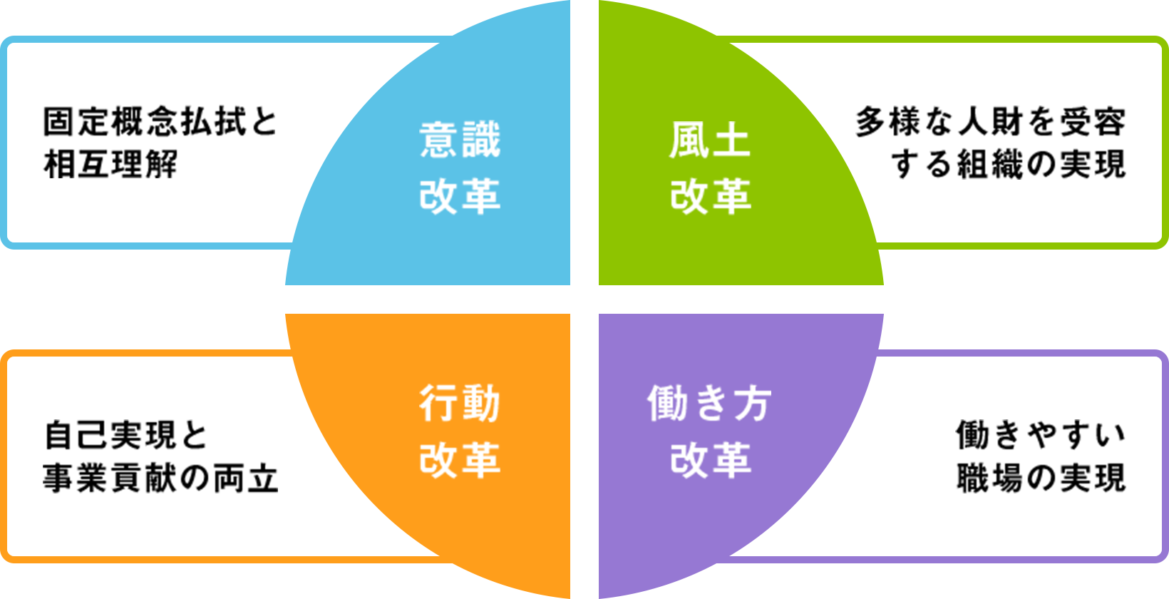 ダイバーシティの推進により、全ての従業員が互いの多様性を尊重し合い、