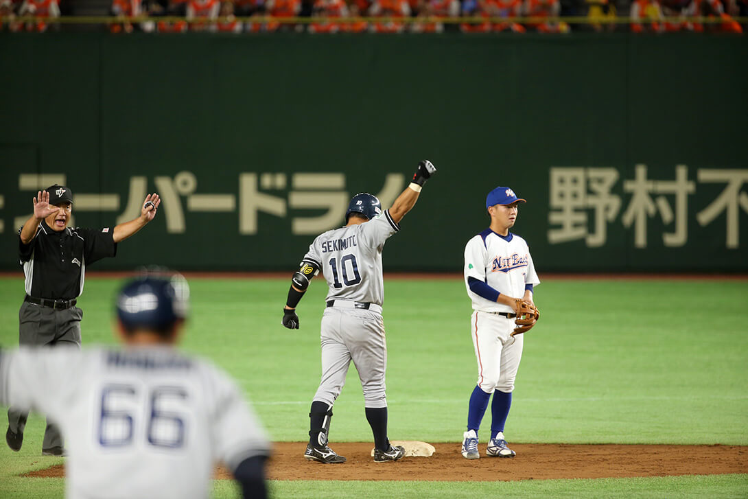 相手センターがファンブルする間に2塁を陥れた北川は、続く関本のセンター前タイムリーで生還し、日通はまず同点に追いつく。