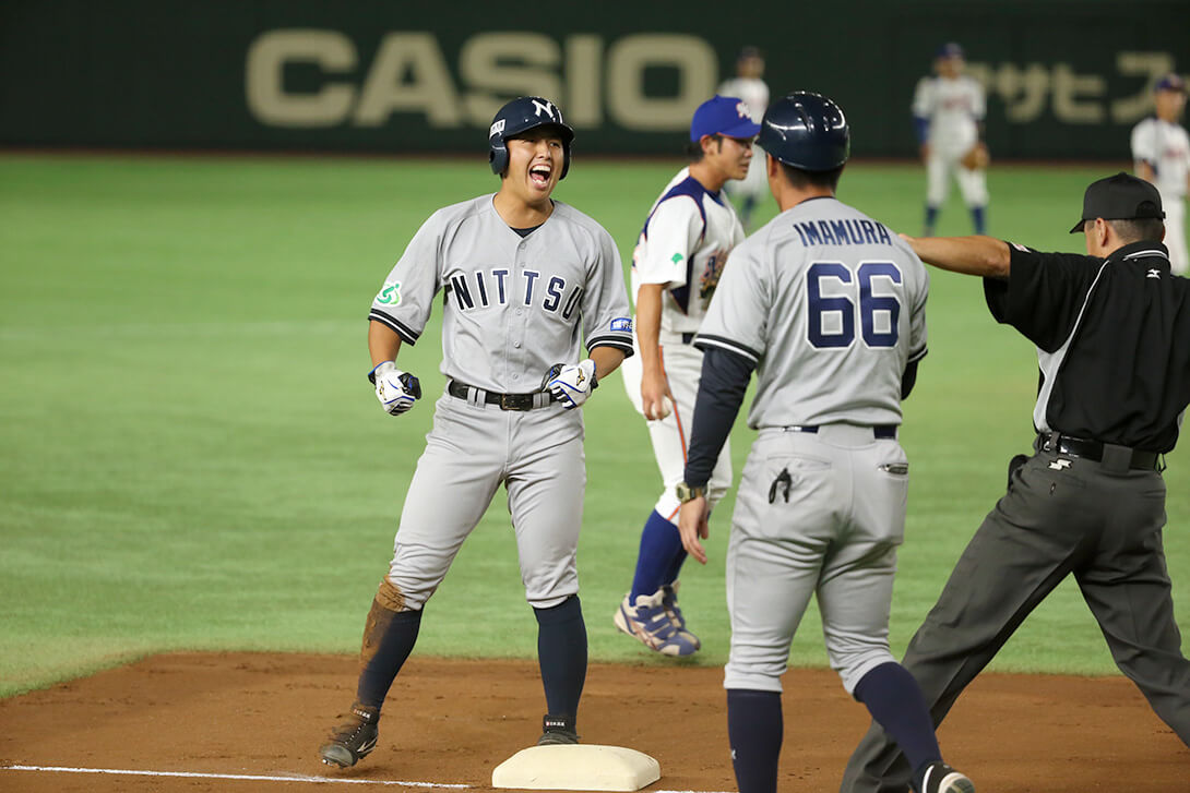 日通は初回、先頭の大谷が初球を叩き一塁への内野安打で出塁。