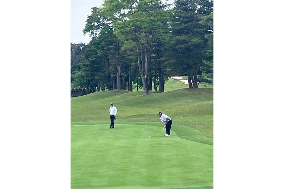 初夏のさわやかな日差しの中、気温23度の絶好の条件で大会がスタート。グリーンは、9.3フィートだったが、実際にはもっと遅いスピードのように思えた。OUTスタートの加藤選手、筒井選手が42、40ストロークと初めてのコースにペースを掴めないまま最初のハーフが進んでしまった。INスタートの佐々木選手、渡邊選手も同様に攻略を見出せないまま徐々にスコアを落としてしまい、46、42ストロークで前半を終了した。