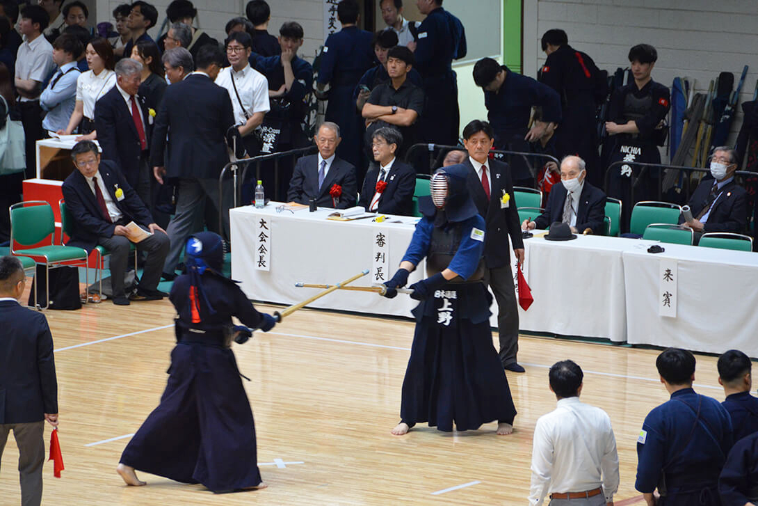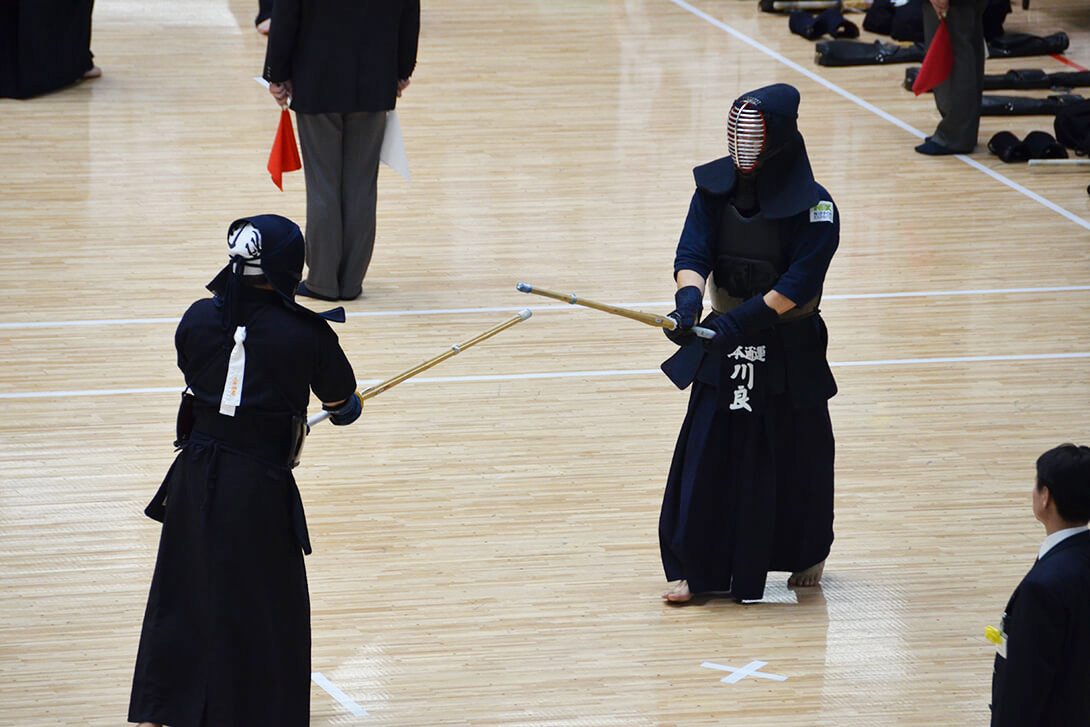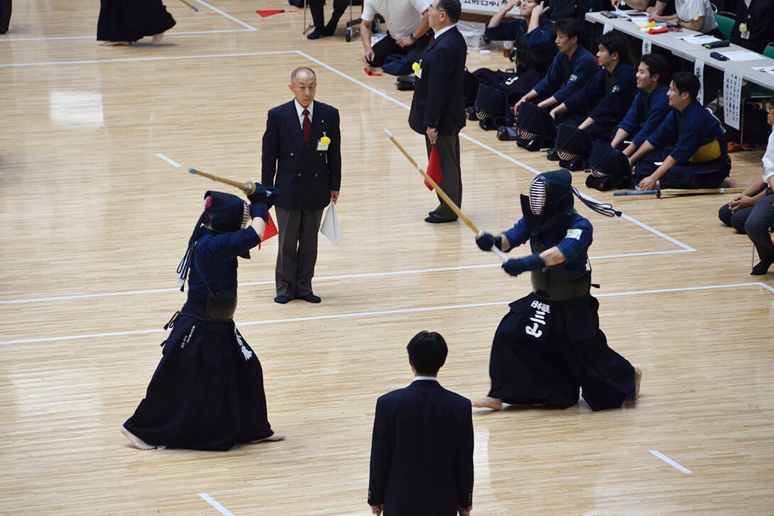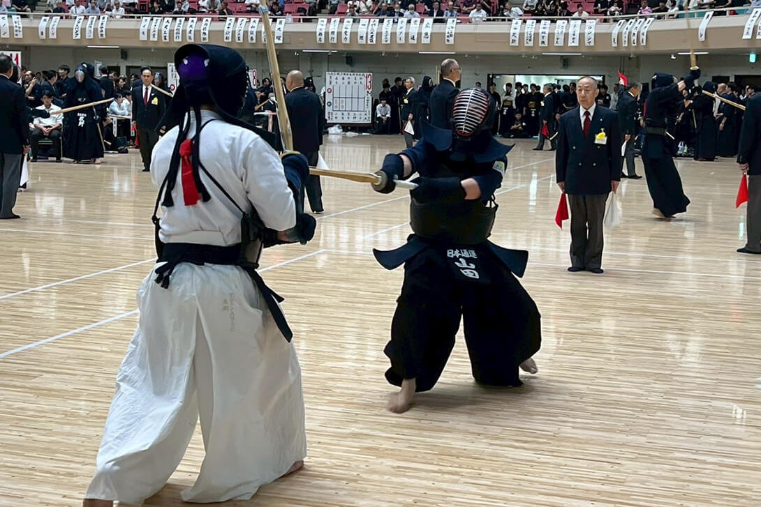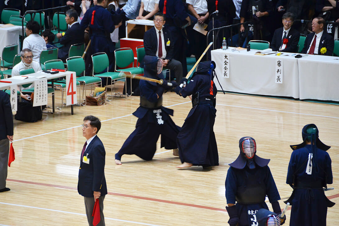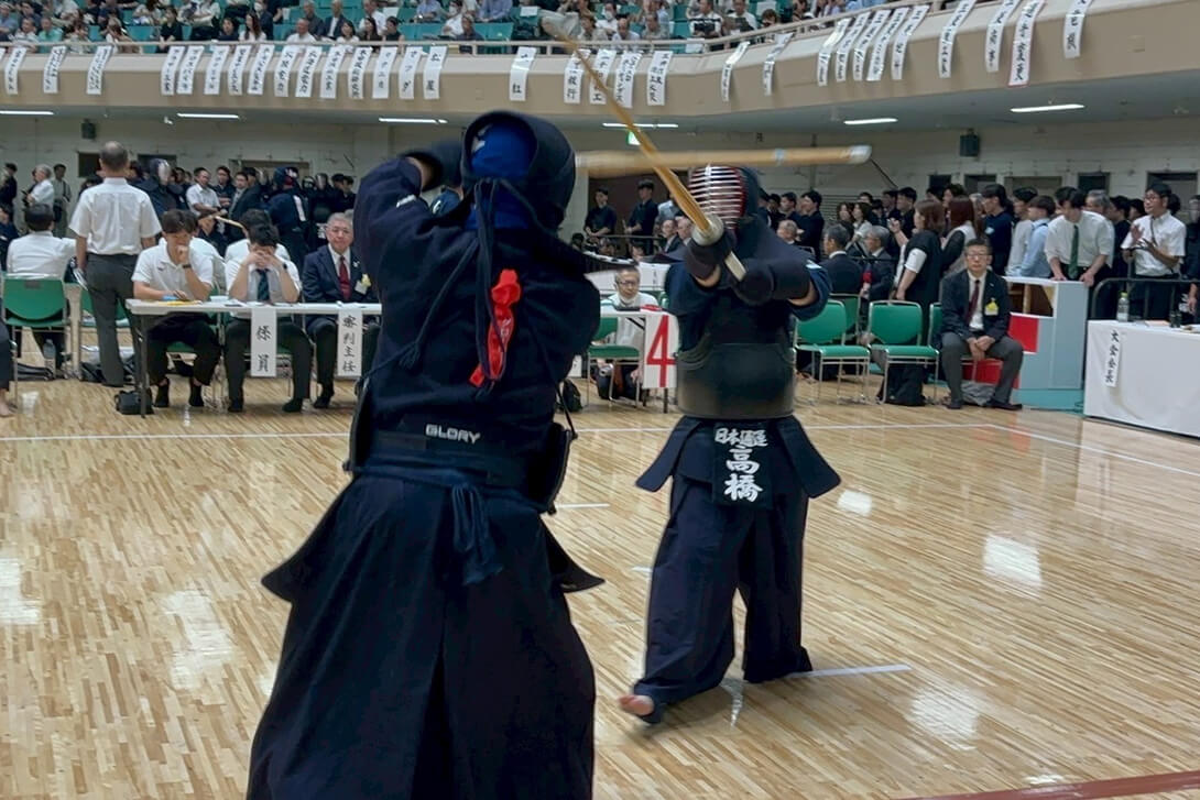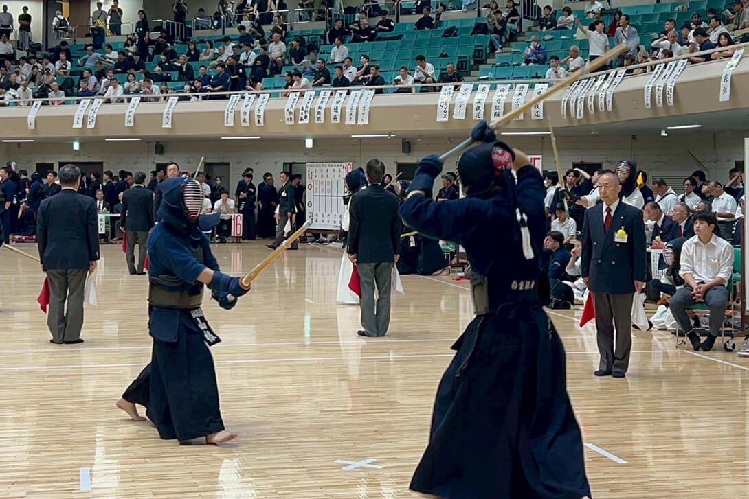 初戦となる2回戦の相手は丸紅。序盤、先鋒・外崎が鮮やかなメンを決め、チームに勢いをもたらした。次鋒・大野は互角の攻防の末、引き分けに持ち込み、続く中堅・諸橋はコテを先取して優位に立ったものの、終了間際にドウを奪われて引き分けに。