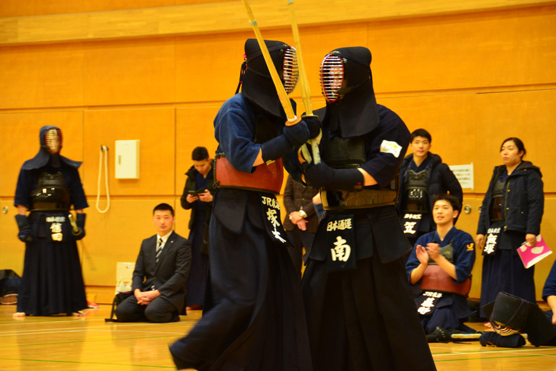 2回戦は東海旅客鉄道と対戦。先鋒外崎が早々に2本勝ちで勢いをつけ、次鋒大野が敗れるも井田、南が勝利し3-1で勝ち上がった。