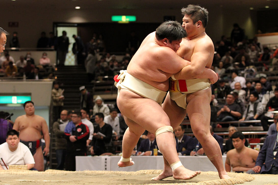 今日対戦した相手はみな体が大きく、体力負けしてしまった相撲でした。大会前の1ヵ月は、体の大きい選手との試合を想定した準備をしてきて、それなりに手応えを感じていました。2年前もこの大会に一人で出場しましたが、そのときより相撲の内容は良かったと思います。1回戦は、立ち合いから相手の十分な形になり、胸を合わされて体格差がもろに出てしまいました。でも、逆に気持ちが吹っ切れました。2回戦の相手は張り差しが得意なので、両手を前に伸ばして、張られないように練習通りの立ち合いができました。突っ張って一度は土俵際まで追い詰めたんですが、相手の腰が重く、気が付いたら相手のもろ差しの形。差されたら腕を極めて前に出ようと思っていましたが、自分の腰が伸びきってしまい、土俵際でどっちがこらえるかの根競べになり、最後は力負けしてしまいました。連敗して決勝トーナメント出場ができなくなり、応援に来ていただいた方のためにせめて1勝したいと思って3回戦に臨みましたが、立ち合いで変わられてしまいました。