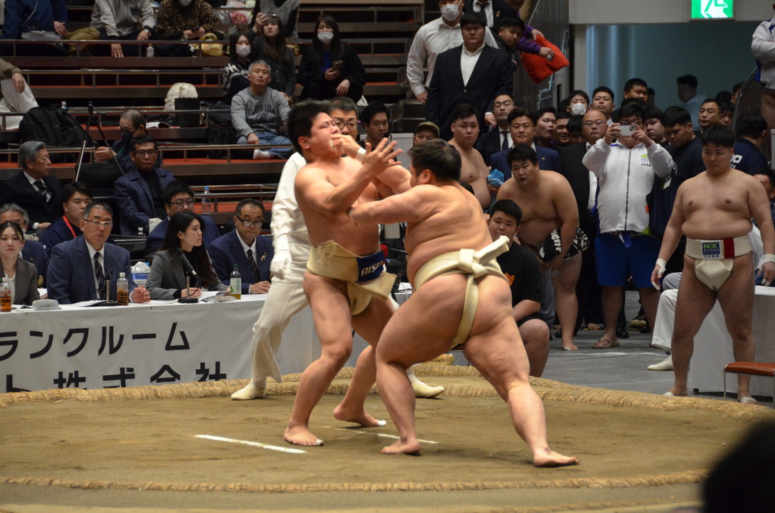 | 1試合目 | 寄り倒し | ベクボルド(九州情報大学) | |